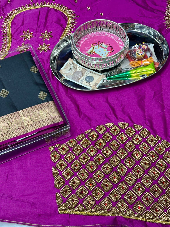 ✨ Paired with a beautifully crafted Aari Work Blouse for an elegant traditional look.