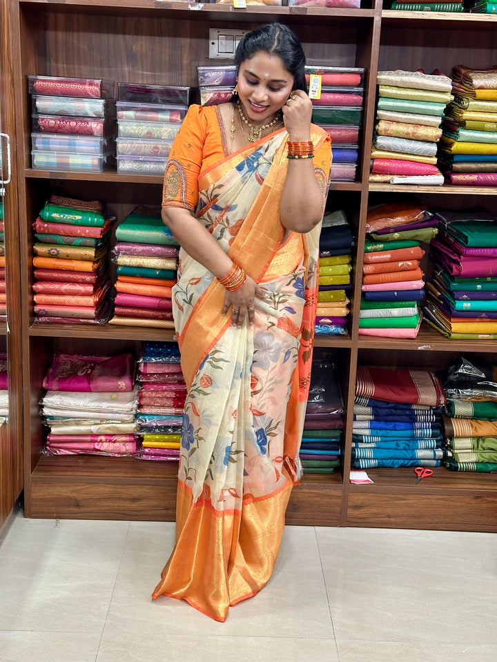 Tissue, printed contrast, Pallu, and contrast blouse, Hand block print… rich Pallu, with contrast tissue blouse