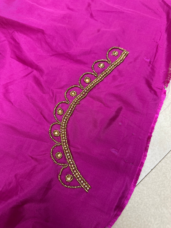 We always recommend dry cleaning as it's a process of cleaning clothes and fabrics using a chemical solvent instead of water. It's ideal for delicate and high-quality garments that can't be washed with water. The process involves pre-treatment, where stains are inspected and treated, followed by dry cleaning using a chemical solvent to dissolve dirt and stains without damaging the fabric. After cleaning, garments are pressed to give them a crisp appearance. Dry cleaning is effective for delicate fabrics and stubborn stains but may not be suitable for all fabrics. Always check the care label and choose a reputable dry cleaner. For washing sarees, hand-wash in cold water with mild detergent, avoid bleach, and dry in shade. Iron with a warm iron while damp, store in a cool, dry place, and handle with care to prevent tears. Following these instructions will keep your sarees beautiful for years. Washing and caring for products is the responsibility of the customer.