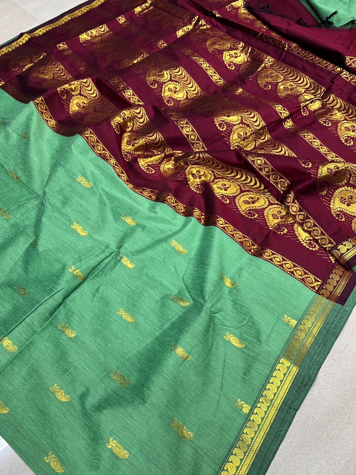 We always recommend dry cleaning as it's a process of cleaning clothes and fabrics using a chemical solvent instead of water. It's ideal for delicate and high-quality garments that can't be washed with water. The process involves pre-treatment, where stains are inspected and treated, followed by dry cleaning using a chemical solvent to dissolve dirt and stains without damaging the fabric. After cleaning, garments are pressed to give them a crisp appearance. Dry cleaning is effective for delicate fabrics and stubborn stains but may not be suitable for all fabrics. Always check the care label and choose a reputable dry cleaner. For washing sarees, hand-wash in cold water with mild detergent, avoid bleach, and dry in shade. Iron with a warm iron while damp, store in a cool, dry place, and handle with care to prevent tears. Following these instructions will keep your sarees beautiful for years. Washing and caring for products is the responsibility of the customer.
